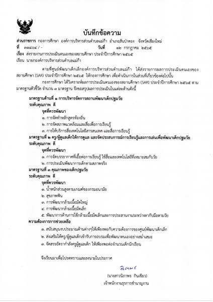 รายงานการประเมินตนเอง SAR ของสถานศึกษา ประจำปีการศึกษา 2565 ของกองการศึกษา