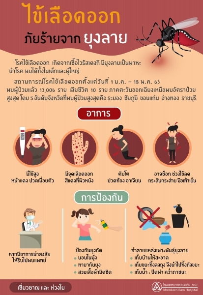 “โรคไข้เลือดออก ภัยร้ายจากยุงลาย” ในช่วงหน้าฝนแบบนี้กลุ่มโรคที่จะไม่พูดถึงไม่ได้ คือ “กลุ่มโรคที่มากับยุงลาย” ได้แก่ โรคไข้เลือดออก (Dengue Fever) โรคไข้ชิคุนกุนยา (Chikungunya Fever) และโรคไข้ซิกา (Zika Fever) โรคไข้เลือดออก คือ โรคติดเชื้อไวรัสเดงกี่ ที่มียุงลายเป็นพาหะ ที่มักระบาดในฤดูฝน