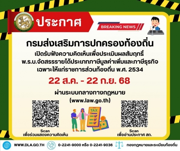 ทางกฎหมาย www.law.go.th หรือ https://law.go.th/listeningDetail?survey_id=NTYxOURHQV9MQVdfRlJPTlRFTkQ=