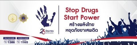- “Stop Drugs, Start Power สร้างพลังไทย หยุดภัยยาเสพติด” ทุกคนสามารถเป็นส่วนหนึ่งในการป้องกันและแก้ไขปัญหายาเสพติดได้ หากพบเบาะแสยาเสพติด แจ้งสายด่วน ป.ป.ส. โทร. 1386