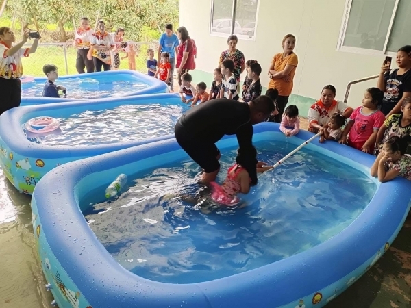 - การฝึกปฏิบัติ การช่วยเหลือคนจมน้ำ การเอาชีวิตรอดจากการจมน้ำ วิธีปฏิบัติตนในการเอาชีวิตรอดจากการจมน้ำ การใช้วัสดุอุปกรณ์ในการช่วยเหลือและการปฐมพยาบาลเบื้องต้น