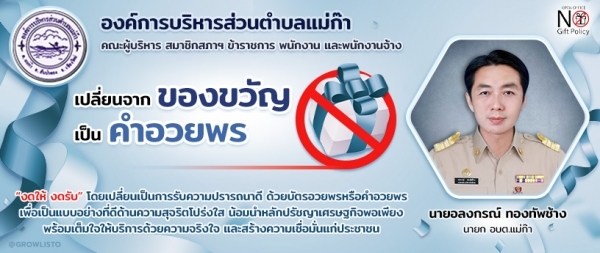 OPEN OFFICE NO Gift Policy (เปิดเผย โปร่งใส มีน้ำใจ ไม่รับของกำนัล) เปลี่ยนจากของขวัญ เป็นคำอวยพร