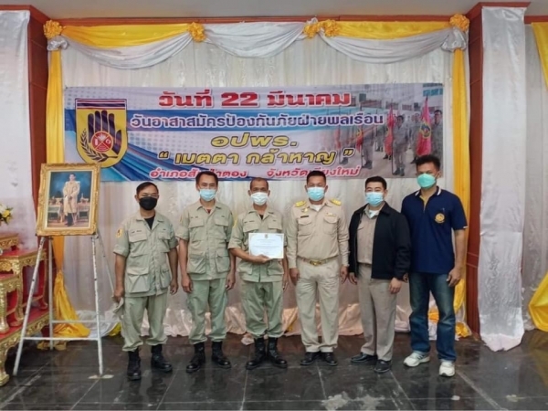 นายสุรพล กรมหลวง เข้ารับมอบใบประกาศเกียรติคุณ อปพร.ดีเด่น ประจำปี 2565 สังกัด อบต.แม่ก๊า โดยท่านนายอำเภอสันป่าตอง