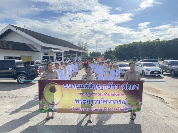 วันที่ 27 มิถุนายน 2568 เวลา 16.00 น. นางวาสนา บุญธรรมช่วย นายอำเภอสันป่าตอง นายอลงกรณ์ ทองทัพช้าง นายกองค์การบริหารส่วนตำบลเเม่ก๊า คณะผู้บริหารข้าราชการ พนักงานส่วนตำบล ผู้นำชุมชน กลุ่มสตรีแม่บ้าน เเละประชาชนในพื้นที่ ร่วมขบวนเเห่อัญเชิญสัญญาบัตร พัดยศ ผ้าไตร พระราชทาน เนื่องในโอกาสที่ พระบาทสมเด็จพระเจ้าอยู่หัว ทรงพระกรุณาโปรดพระราชทานเลื่อนสมณศักดิ์ให้ ท่านพระครูวรกิจจาภรณ์ เจ้าคณะตำบลเเม่ก๊า เป็นพระครูสัญญาบัตร เทียบเจ้าคณะอำเภอชั้นเอก (ทจอ.ชอ) ในราชทินนามเดิม