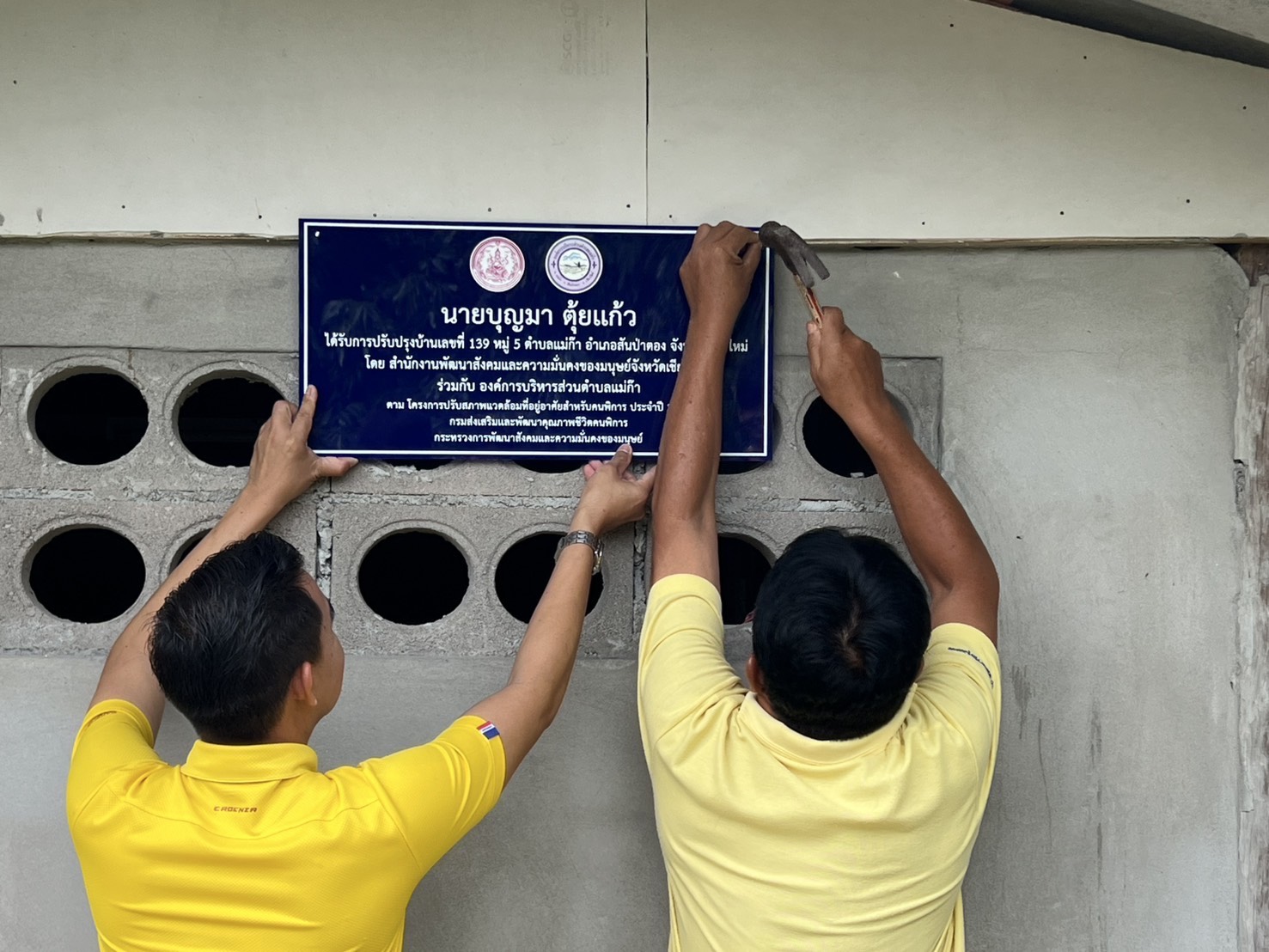วันที่ 26 กันยายน 2568 เวลา 10.00 น. สำนักงานพัฒนาสังคมเเละความมั่นคงของมุนษย์ จังหวัดเชียงใหม่ ร่วมกับองค์การบริหารส่วนตำบลเเม่ก๊า นำโดย รองนายกอบต.เเม่ก๊า ร้อยตรีณรงค์ฤทธิ์ ทอนตาประเสริฐ นายอนุสิษฐ์ ยาวิชัย เเละเลขานุการนายก นายมงคล ยาวิชัย เจ้าหน้าที่กองสวัสดิการสังคมฯ ผู้นำชุมชน ร่วมมอบบ้านผู้ยากไร้ในเขตพื้นที่ตำบลเเม่ก๊า ตามโครงการปรับสภาพเเวดล้อมที่อยู่อาศัยสำหรับผู้พิการ ประจำปี 2567 จำนวน 2 ราย ได้เเก่ นายบุญมา ตุ้ยเเก้ว บ้านเลขที่ 139 หมู่ที่ 5 เเละ นางวรรณ์ เเปงใจ บ้านเลขที่ 180 หมู่ที่ 7 ต.เเม่ก๊า อ.สันป่าตอง จ.เชียงใหม่