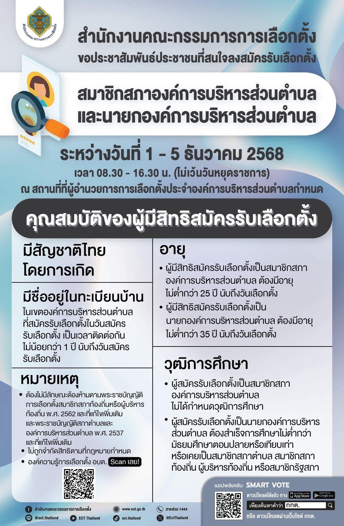 องค์การบริหารส่วนตำบลเเม่ก๊า ประชาสัมพันธ์คุณสมบัติของผู้มีสิทธิสมัครรับเลือกตั้ง