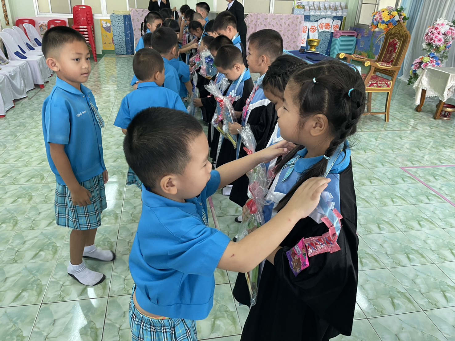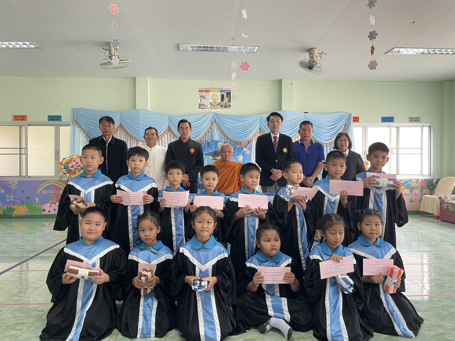 วันที่ 27 มีนาคม 2569 เวลา 09.00 น. ศูนย์พัฒนาเด็กเล็กตำบลแม่ก๊า จัดกิจกรรมส่งเสริมแรงจูงใจ ใฝ่สัมฤทธิ์ให้กับเด็ก โดยมีท่านพระครูวรกิจจาถรณ์ เจ้าอาวาทวัดแม่ก๊า มอบทุนการศึกษาให้กับเด็กนักเรียน พร้อมกล่าวให้โอวาทกับนักเรียนที่สำเร็จการศึกษาชั้นอนุบาล 3 นายอลงกรณ์ ทองทัพช้าง นายกองค์การบริหารส่วนตำบลแม่ก๊า มอบประกาศนียบัตรให้กับนักเรียนที่สำเร็จการศึกษาระดับชั้นอนุบาล 3 และกล่าวให้โอวาท พร้อมมอบรูปภาพที่ระลึก อุปกรณ์การเรียน โดยคณะผู้บริหารและครูผู้สอน มีพิธีผูกข้อไม้ข้อมือเพื่อเป็นสิริมงคลให้เด็กๆ มีตัวแทนน้องนักเรียนชั้นอนุบาล 1 เเละชั้นอนุบาล 2 กล่าวแสดงความยินดี ณ ศูนย์พัฒนาเด็กเล็กตำบลแม่ก๊า อ.สันป่าตอง จ.เชียงใหม่